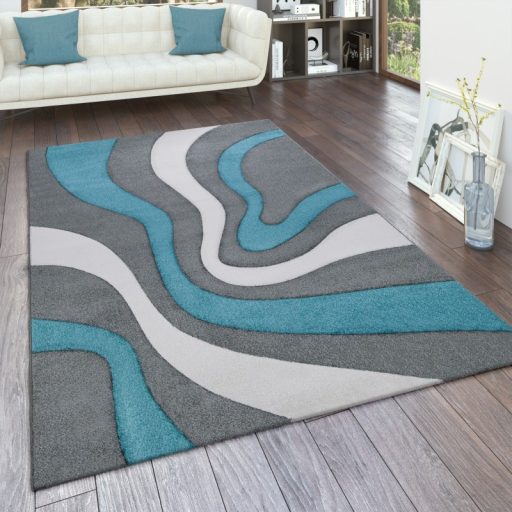 Modern 3D Szőnyeg Türkiz-Szürke Hullám Mintával - Friss Színek, Látványos Térhatás