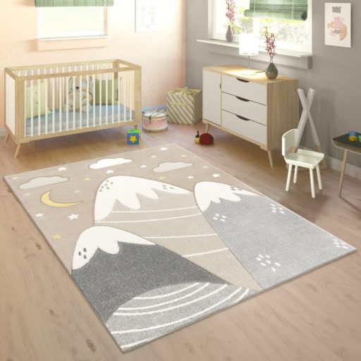 Bézs gyerek szőnyeg 3D rövidszálú gyerekszoba szőnyeg hegy 80x150 cm