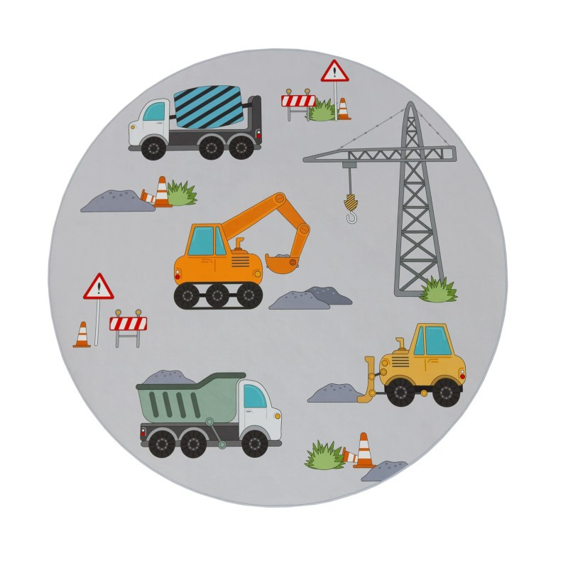 Színes, útépítéses mintájú kisfiú szőnyeg, csúszásmentes és mosható szőnyeg
