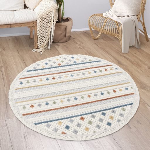 Kerek szőnyeg - nappali szőnyeg, színes, ethno mintás, 3D hatású, 120 cm kör