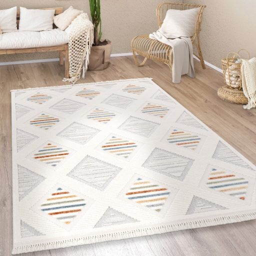 Nappali szőnyeg - színes, ethno, rombusz mintás, 3D hatású, 160x230 cm