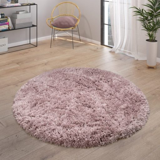 Flokati stílusú shaggy szőnyeg hosszú szálú bozontos halványlila 120 cm kör alakú