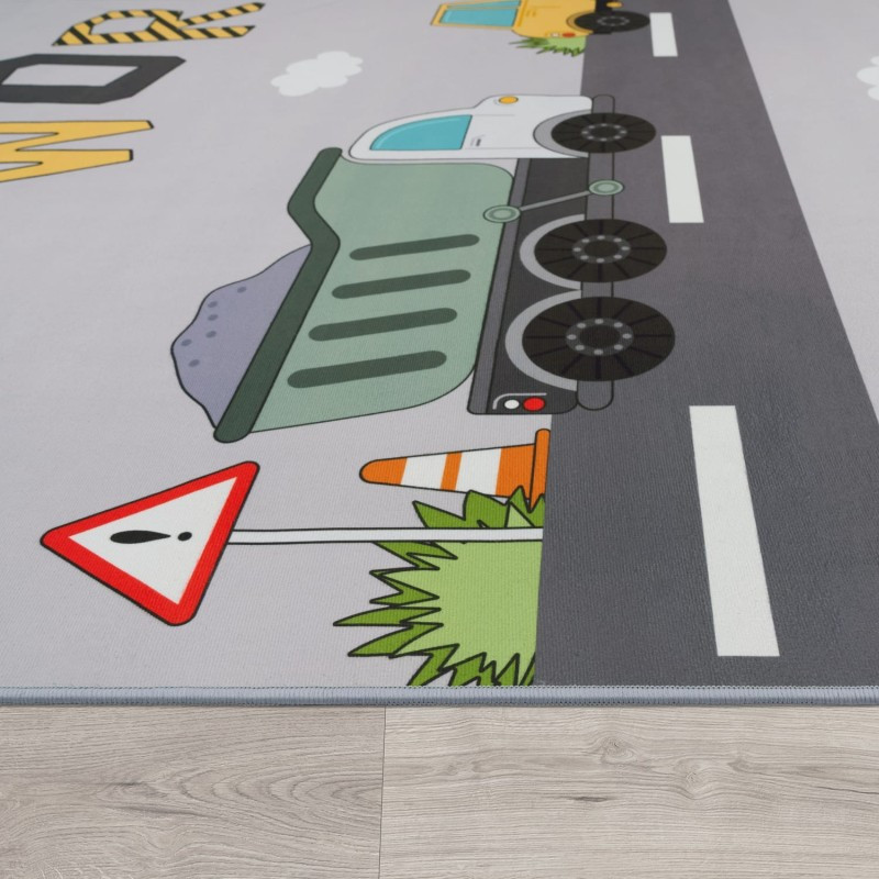 Színes, útépítéses mintájú gyerekszőnyeg, csúszásmentes és mosható szőnyeg