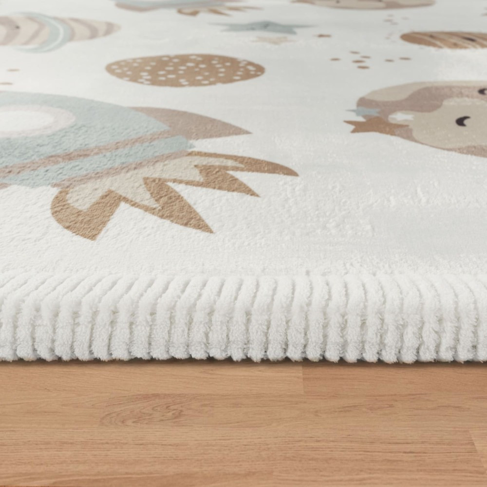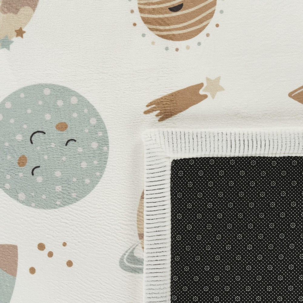 Merülj el egy álomszerű kalandban és a világűr végtelenségében ezekkel a divatos, csúszásmentes gyerekszőnyegekkel, miközben élvezed a selymesen puha lakberendezési kiegészítők egyedülállóan otthonos hangulatát. Gyermekbarát kialakításuknak köszönhetően ezek a szőnyegek minden gyerekszobában sikert aratnak, és vidám csillagaikkal és bolygóikkal elragadtatják a kicsiket, garantáltan álmokat ébresztve. A fehér háttér barátságos és vidám megjelenést kölcsönöz ezeknek a szőnyegeknek, ügyesen keretezi környezetüket és kiemeli a meglévő bútorokat. Bárki, aki a világűrbe szeretne utazni, felkészülhet egy igazi élményre. Rövid szálú szőnyegeink ideálisak bármilyen helyiségben. A kiváló minőségű anyagoknak és a gondos kidolgozásnak köszönhetően hihetetlenül puhák, strapabíróak és tartósak. 100% poliészterből készültek, így sokáig kitartanak, még intenzív használat esetén is, és különösen könnyen kezelhetők. Az OEKO-TEX STANDARD 100 szabvány szerint mentesek a káros anyagoktól és ártalmatlanok az egészségre.
