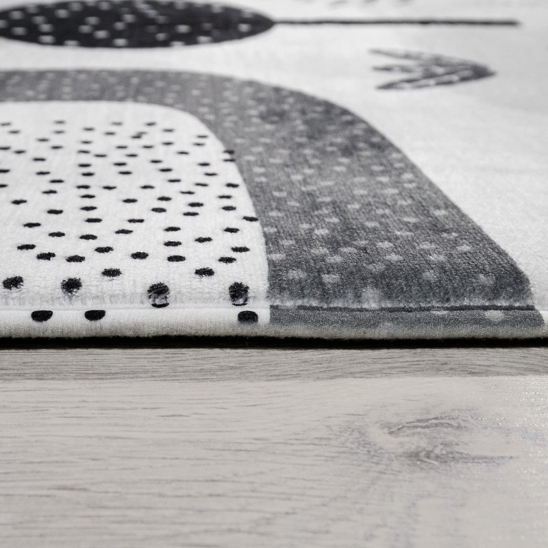 Ez a kedves, részletgazdag fehér szőnyeg különleges kombinációja az autóút mintának és az aranyos erdei állatok illusztrációinak. Olyan gyerekszőnyeg, amely nemcsak a fantáziát mozgatja meg, de egyúttal nyugodt, harmonikus hangulatot is áraszt a gyerekszobában.