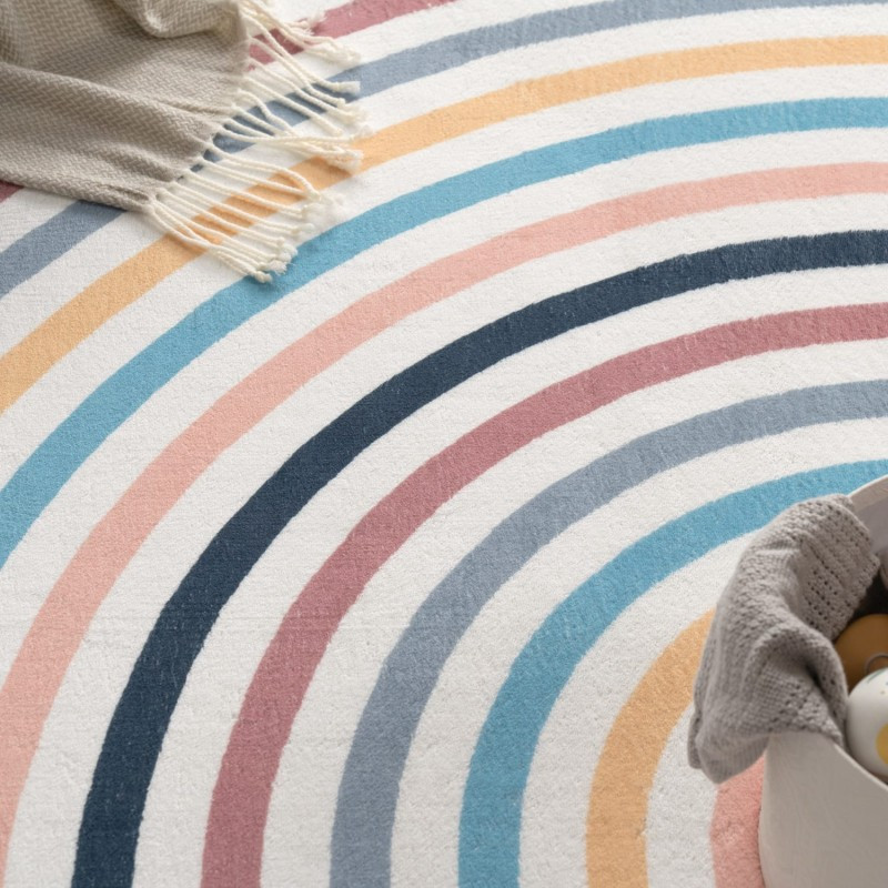 Színes, csíkos kerek gyerekszőnyeg - vidám minta, praktikus kialakítás