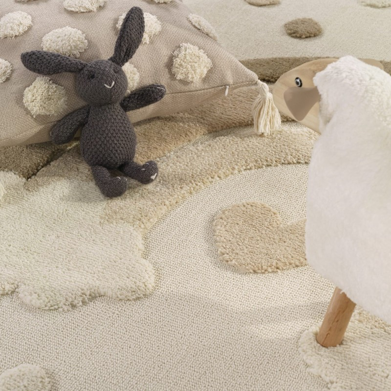 Ez a gyerekszőnyeg tökéletes választás, ha a természetes árnyalatokat kedveled, de szeretnél egy kis színt is csempészni a térbe. A szőnyeg puha felülete ideális a mindennapi tevékenységekhez, legyen szó mesenézésről, olvasásról vagy játékról.
