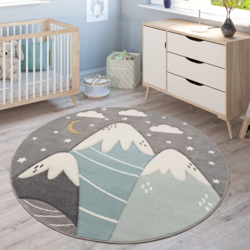 Kerek szőnyeg - Kék-szürke gyerek szőnyeg 3D gyerekszoba szőnyeg hegy 200 cm kör