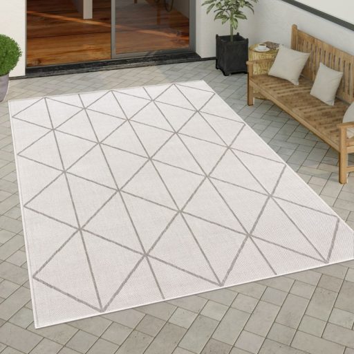 Fehér skandináv kültéri szőnyeg geometriai mintával - stílusos és időtálló megoldás kültérre