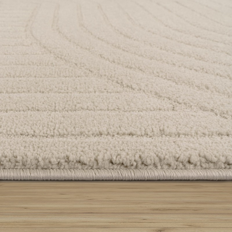 Ez a skandináv stílusú, absztrakt krém szőnyeg egyszerre modern és otthonos, tökéletes választás, ha egy időtálló, dekoratív és praktikus nappali szőnyeget keresel.
