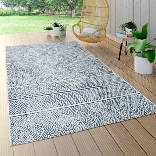 Kültéri szőnyeg teraszra lapos szövésű marokkói mintás - Kék vízálló szőnyeg