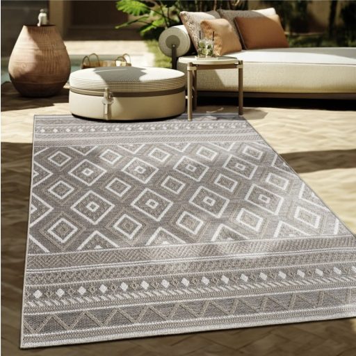 Ez a modern szőnyeg teraszra nemcsak funkcionális, hanem dekoratív kiegészítő is: szép keretet ad a kültéri pihenősaroknak, rendezettebbé és otthonosabbá varázsolja a tér hangulatát. A szőnyegek közül ez a típus kiemelkedik azzal, hogy beltéren is tökéletesen megállja a helyét, például előszobában vagy konyhában.