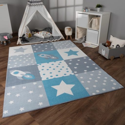 Kék gyerekszőnyeg rakéta mintával