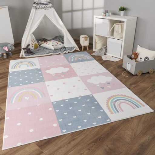 Rózsaszín gyerekszőnyeg szivárvány mintával