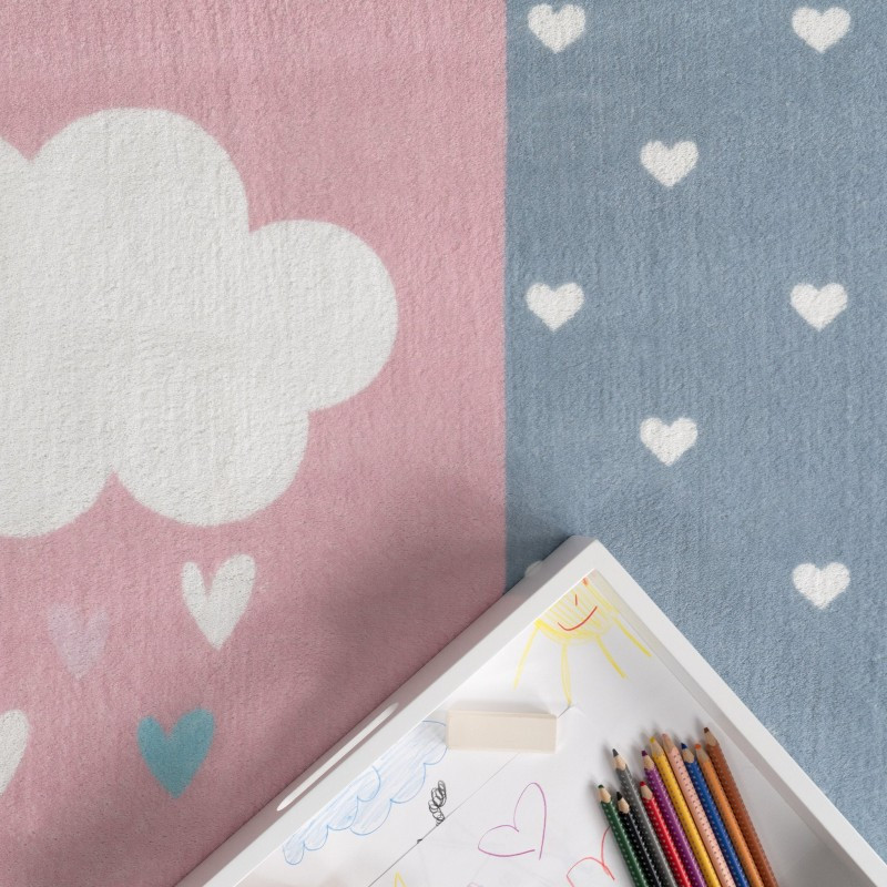 Rózsaszín gyerekszőnyeg szivárvány mintával