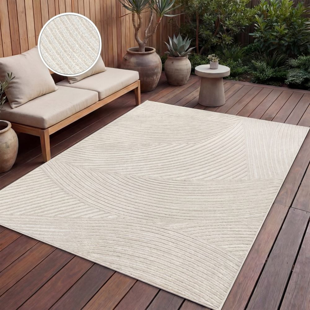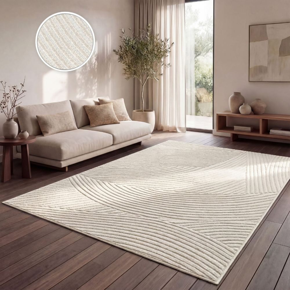 Skandináv 3D modern szőnyeg krém színben - kültéri és beltéri használatra, absztrakt mintával