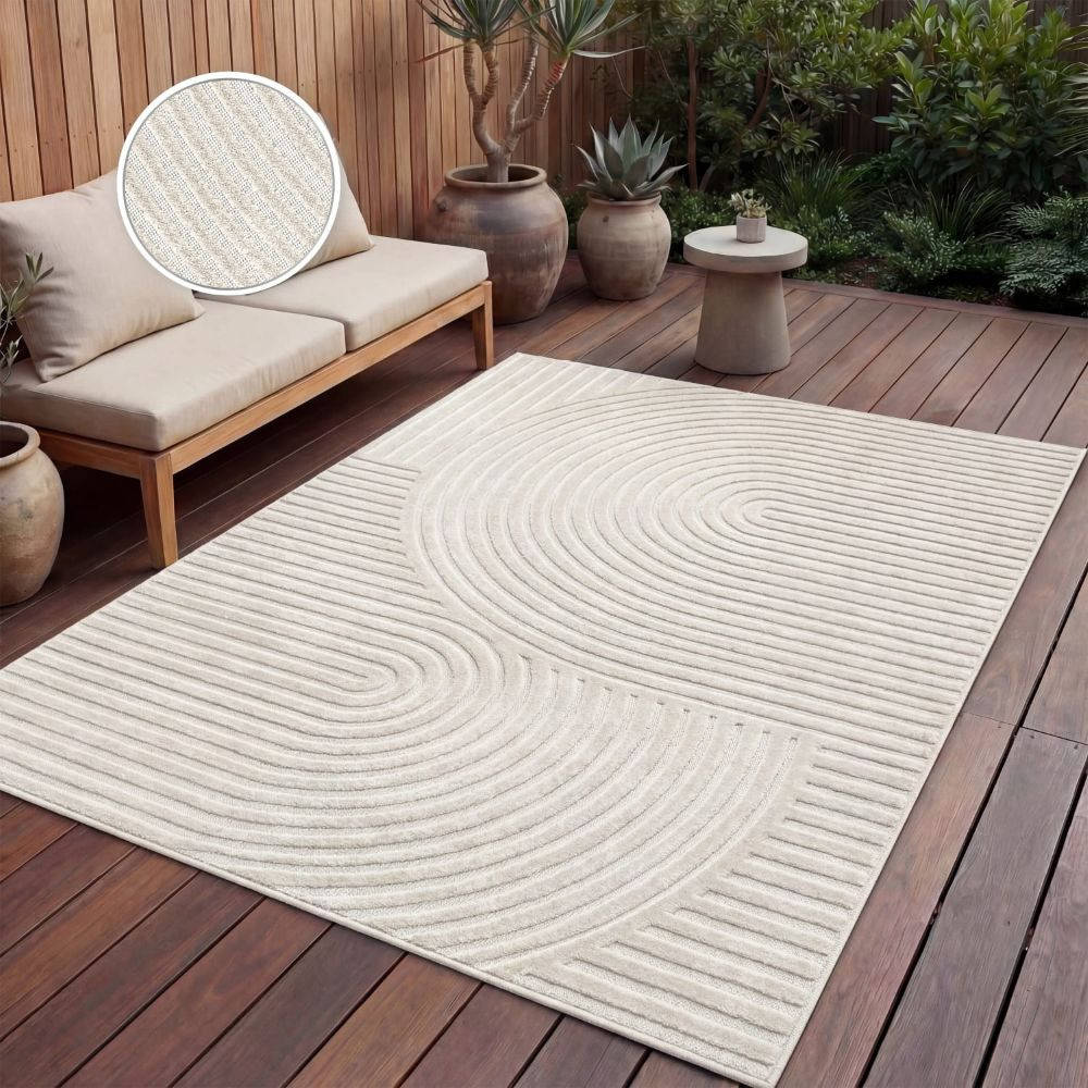 Skandináv 3D modern szőnyeg krém színben - kültéri és beltéri használatra, geometrikus mintával
