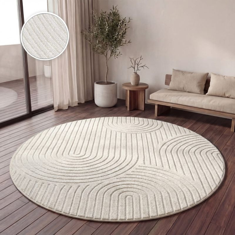 Skandináv 3D modern szőnyeg krém színben - kültéri és beltéri használatra, geometriai mintával